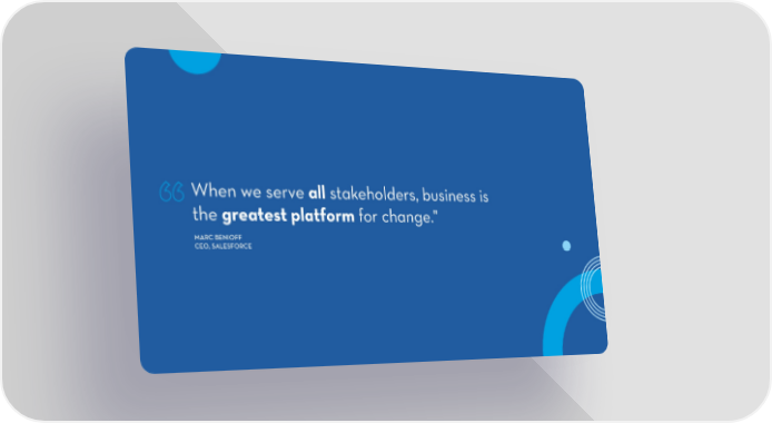 When we serve all stakeholders, business is “the greatest platform for change." MARC BENIOFF CEO, SALESFORCE
